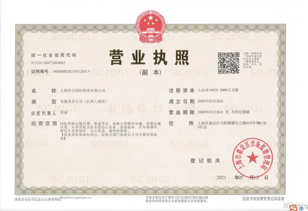 【標(biāo)題】上海佳合國際物流有限公司注冊資本10058萬,大型貨物運(yùn)輸資...查看詳情>>>